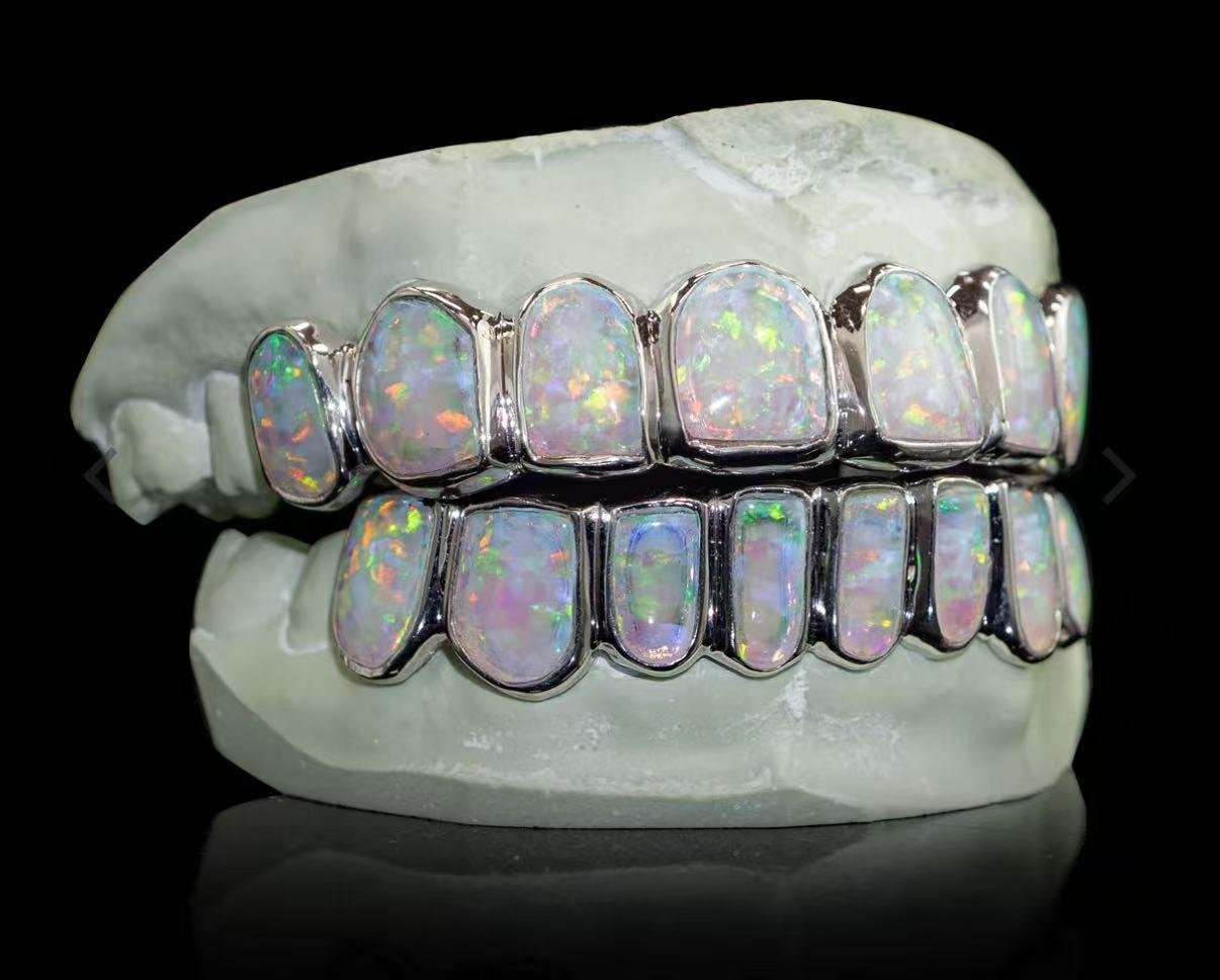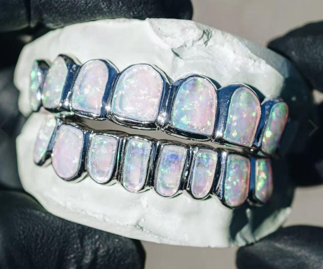 Opal cut set colors grillz white gold and blue opal