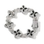 SSS Infinity 四叶草 清度蓝宝石套装 金色 铜 银与锆石 合成钻石 可调节手镯项链 时尚 时尚 时尚珠宝